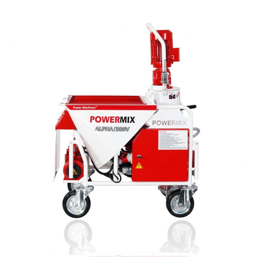 POWERMIX ALPHA Hazır Sıva Makinesi, alçı veya çimento esaslı her türlü kuru karışımları pompalayarak püskürten, iç ve dış sıva uygulamalarında kullanılan yüksek performanslı bir alçı sıva makinesidir. Ergonomik dizaynı ve yüksek performansıyla inşaat sektörüne teknolojik yenilik getiriyor.